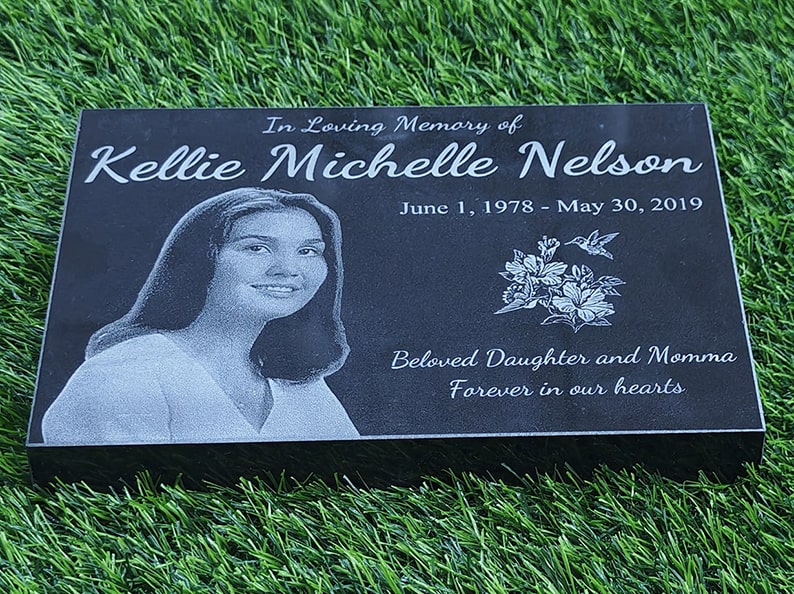 Flat Black Granite Headstones with Your Photo for Human - Durable & Water Proof - Garden Grave Marker