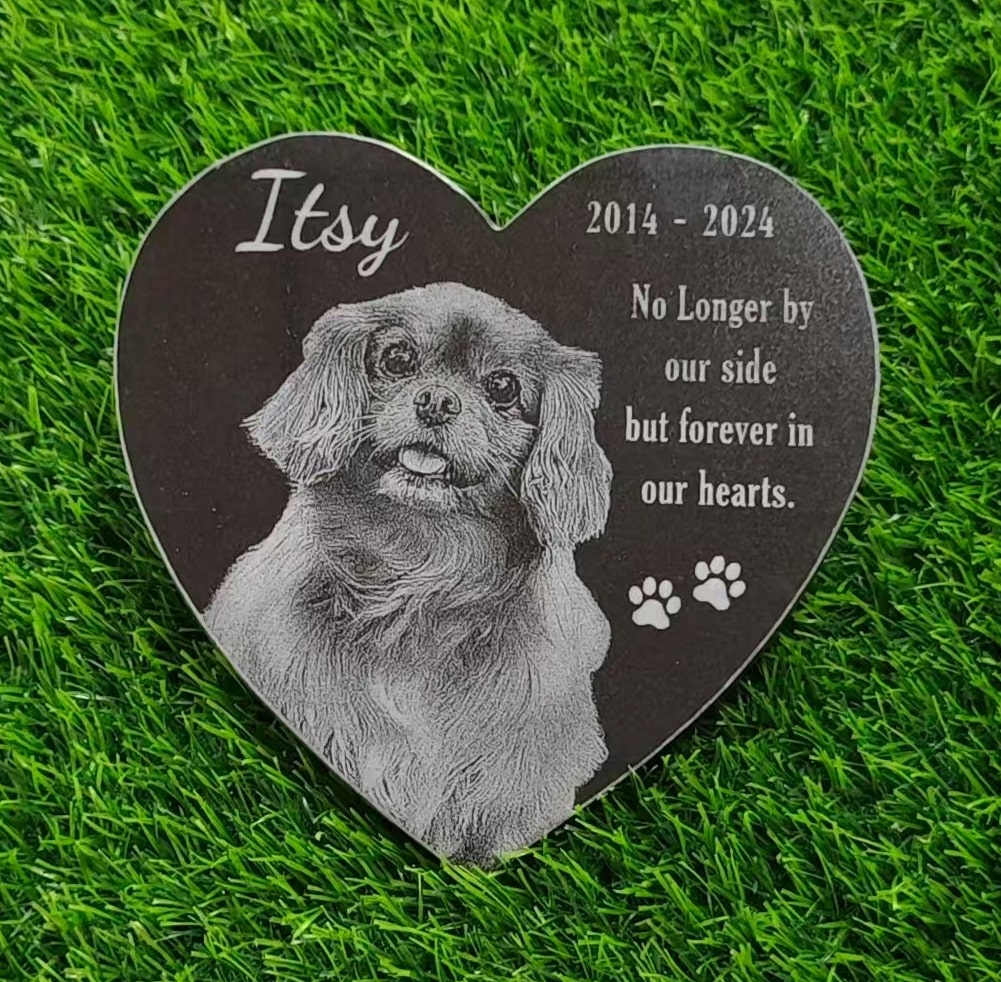 Personalised Heart Shaped Dog Memorial - Laser Engraved, cat grave marker for cemetery, person headstone marker